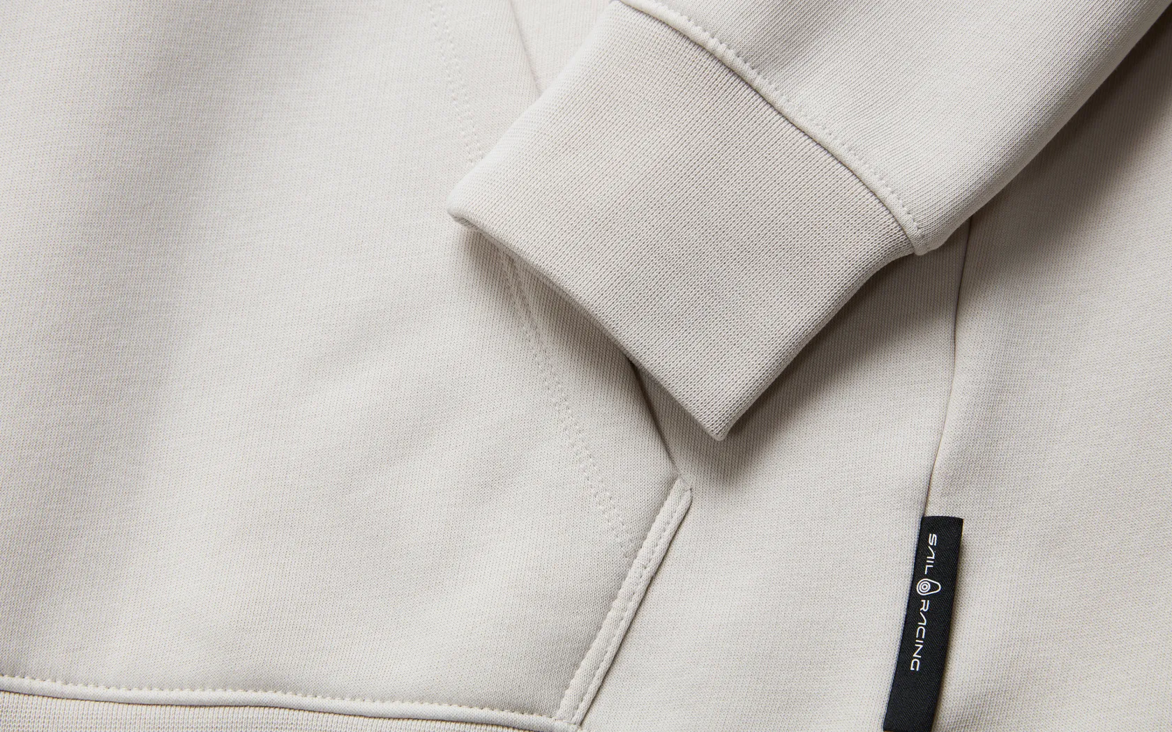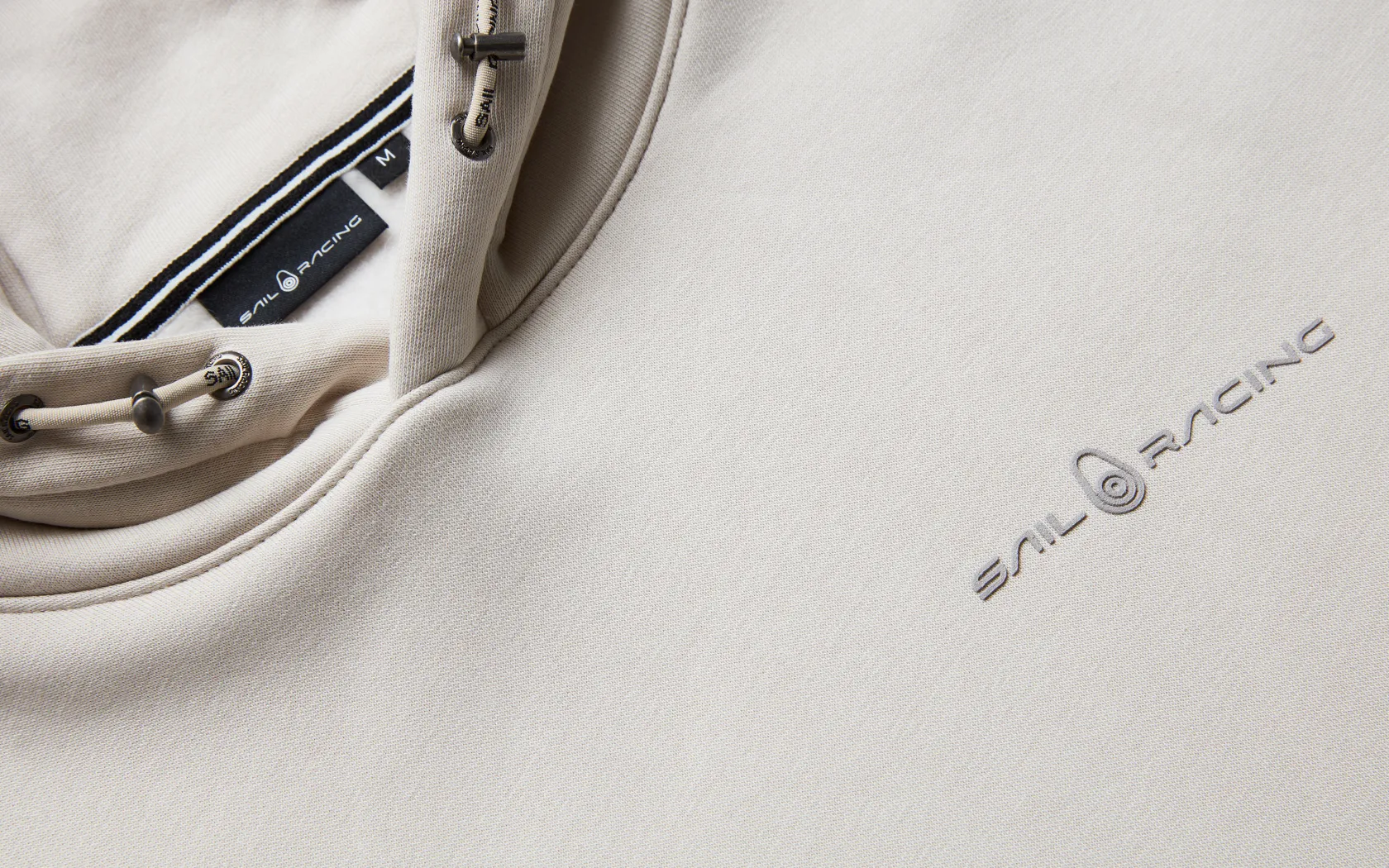 Hoodien kommer med en rymlig känguruficka, ribbade muddar i ärmslut och i nederkant samt dragsko-justeringar i huvan för en anpassad passform. Designad med en mindre Sail Racing silikon-logotyp på bröstet, en patch i vänster sidsöm och en block-logotyp på toppen av huvan.