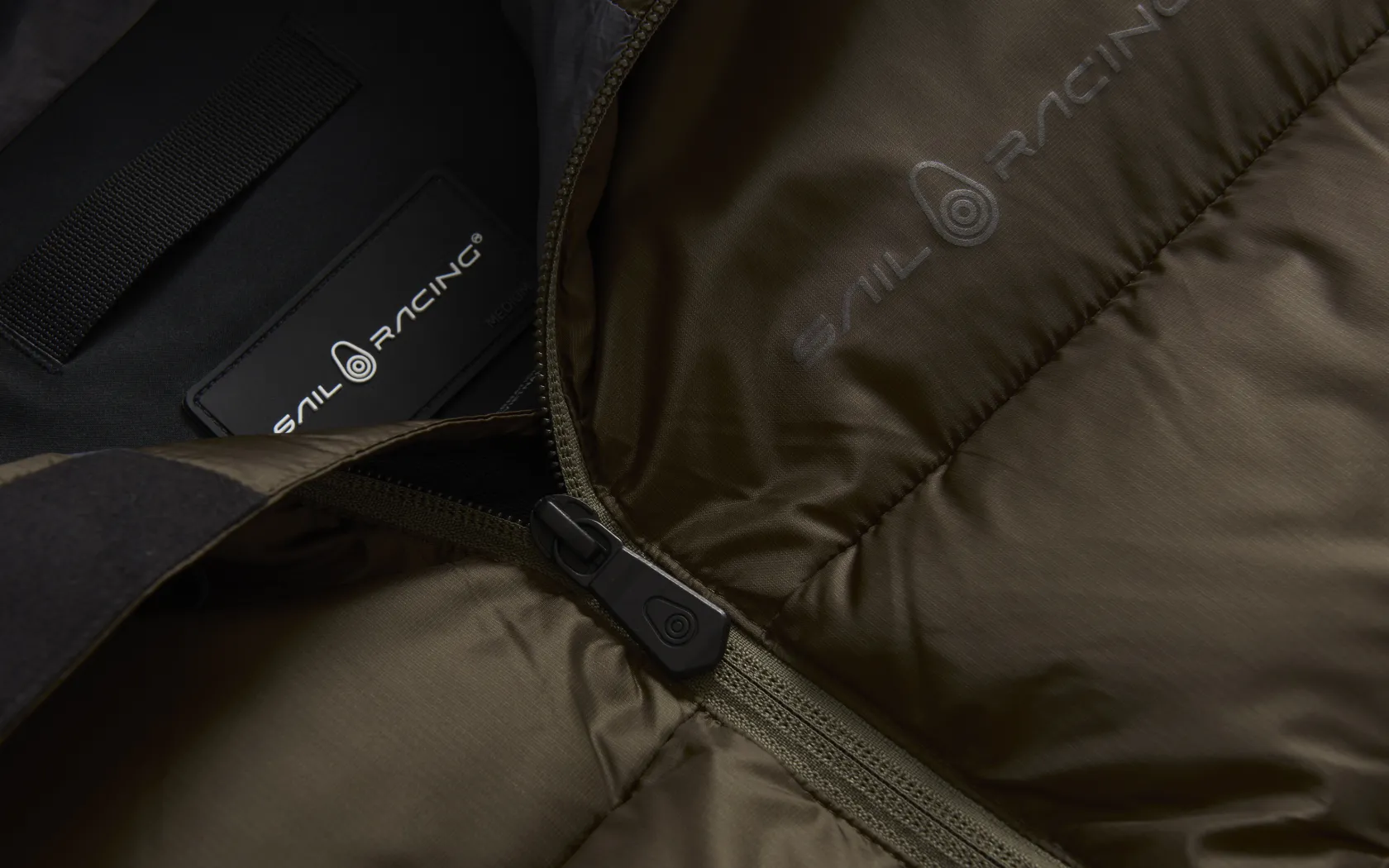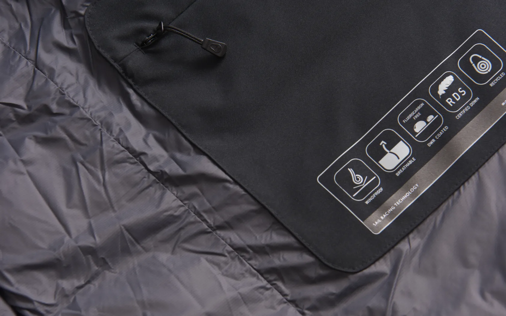 Cloud Down Hood är en dunjacka konstruerad i ett slitstarkt nylontyg med ripstop och en insida i Graphene-tyg som optimerar temperaturreglering. Jackan har en PFC-fri DWR-behandling för att förhindra att tyget blir blött och är fylld med 90/10 Blue Sign och RDS certifierat dun och fjädrar. Fill power 700. De justerbara snörena i huvan och nederkanten av jackan ger en anpassad passform, som tillsammans med elastiska lycra muddar vid ärmsluten ger extra komfort och förhindrar inträngande av vatten och vind. Midjefickorna är fodrade med fleece för ökad komfort, och innerfickan med dragkedja ger säker förvaring. Sail Racing logga på bröstet och på toppen av huvan.r