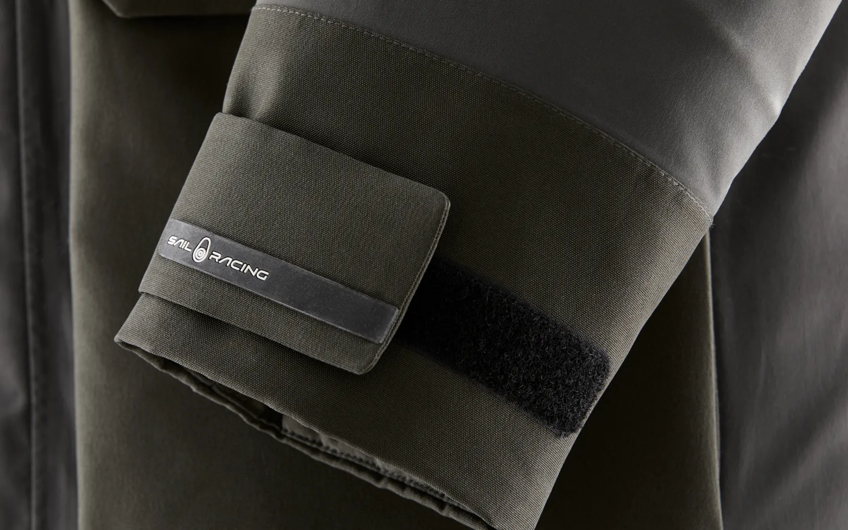 Jackan är konstruerad med vattenavvisande YKK dragkedjor samt sex rymliga bröst- och midjefickor. Midjefickorna är fodrade med fleece för ökad komfort och de två innerfickorna med dragkedja ger säker förvaring för ömtåliga tillbehörigheter. Sail Racing logga framtill, på ärmen och huvan, och blocklogga på ärmarna. Sail Racing Antarctica logga på bröstet.