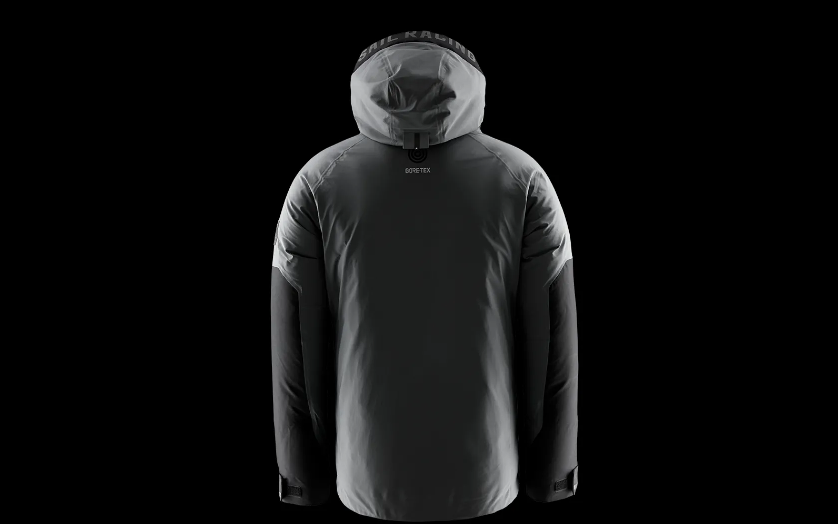 Antarctica tryck på insidan av ryggen och badge på ärmen. Sail Racing logga på huvan, ärmarna, bröstet samt hängöglan. Broderat Gore-Tex märke finns i nacken tillsammans med en Sail Racing logotyp. r
