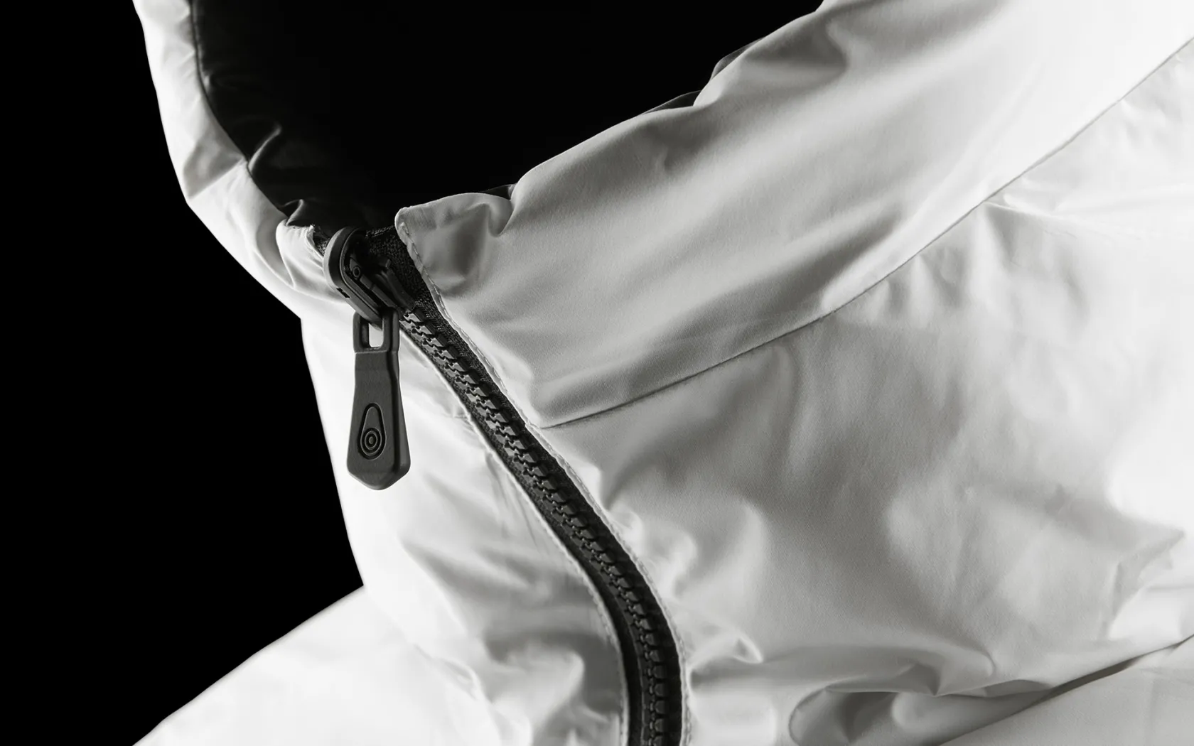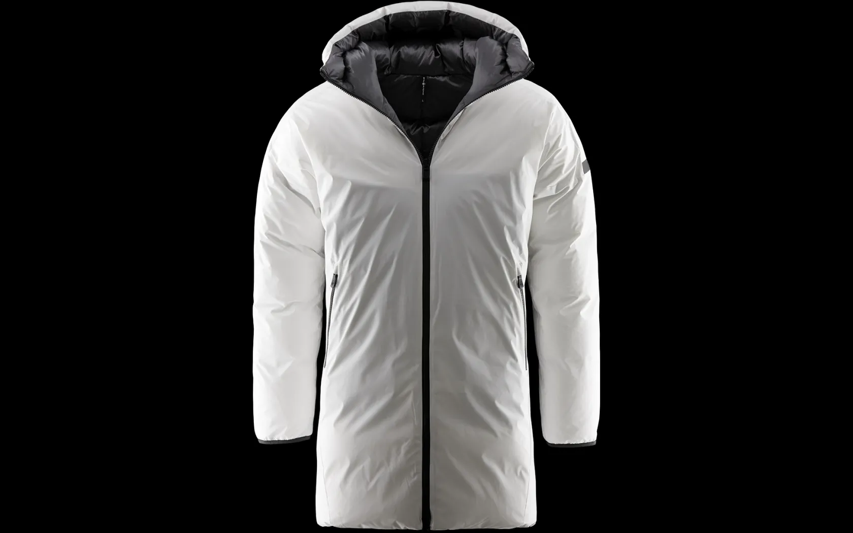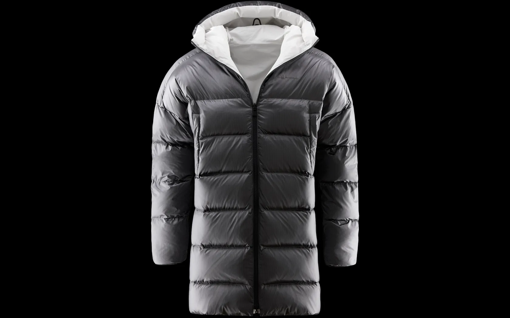 Jackan har hög andningsförmåga på 10 000 MVP samt ett invändigt foder i graphen-nylon för att optimera temperaturregleringen. För att ytterligare addera till jackans funktion, är den utrustad med en PFC-fri DWR-behandling med vattenavstötande egenskaper för att förhindra att yttertyget blir blött. Fyllningen består av 90/10 Blue Sign och RDS certifierat dun och fjädrar för värme och komfort i kyliga vinterförhållanden. Fill power 700.