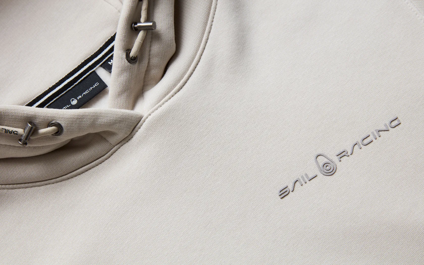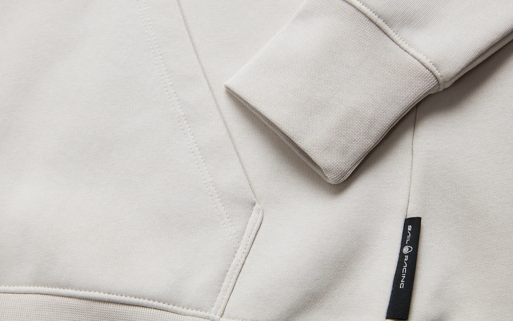 Women’s Gale Logo Hood tillverkad av BCI-bomull och återvunnen polyester. Huvan har en klassisk design med påsficka framtill, justerbar huva och ribbade muddar i ärmslut och nederkant. Sail Racing-logotyp i gummi på bröstet, i sidosömmen och bloc-logotyp upptill på huvan.