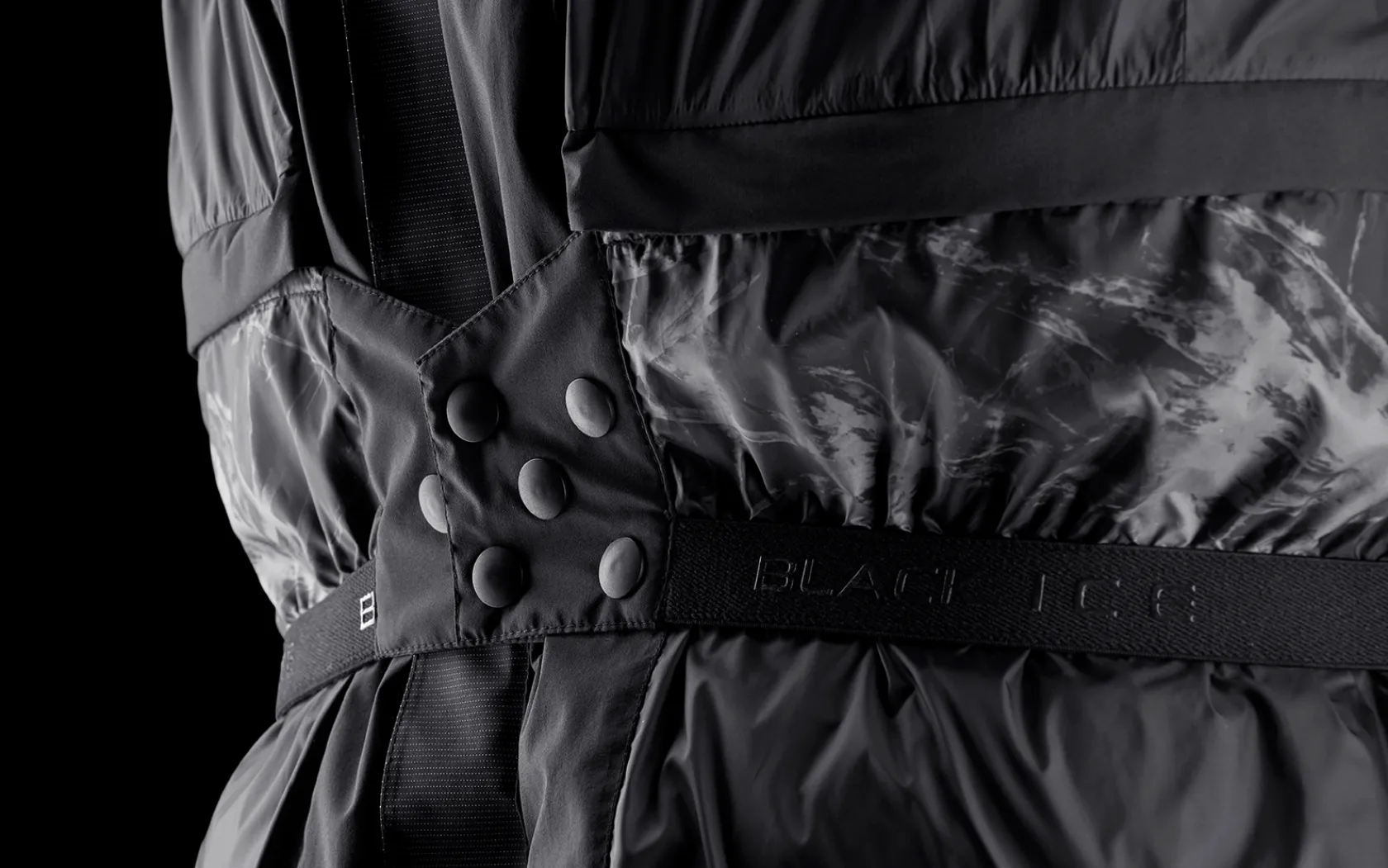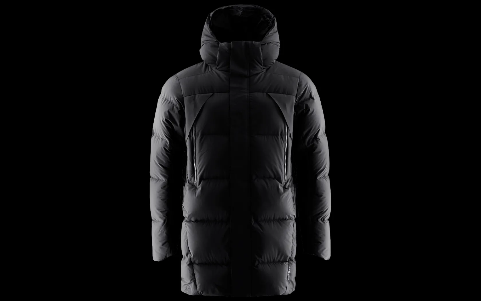 Black Ice Gore Tex Down Parka är en unikt konstruerad dunparka med quiltat mönster, tillverkad av ett lätt och slittåligt, 2-lagers GORE-TEX® PACLITE PLUS Technology nylonmaterial, vilket ger utmärkt vind- och vattentäthet med exceptionell andningsförmåga. Jackan har en DWR-behandling för att förbättra vattenavstötning och förhindra att yttertyget blir blött. Parkan har ett invändigt foder i Graphene-tyg för att optimera termoreglering och är fylld med 90/10 Blue Sign och RDS certifierat dun och fjädrar, vilket garanterar värme och komfort i tuffa vinterförhållanden. Fill power: 700.r