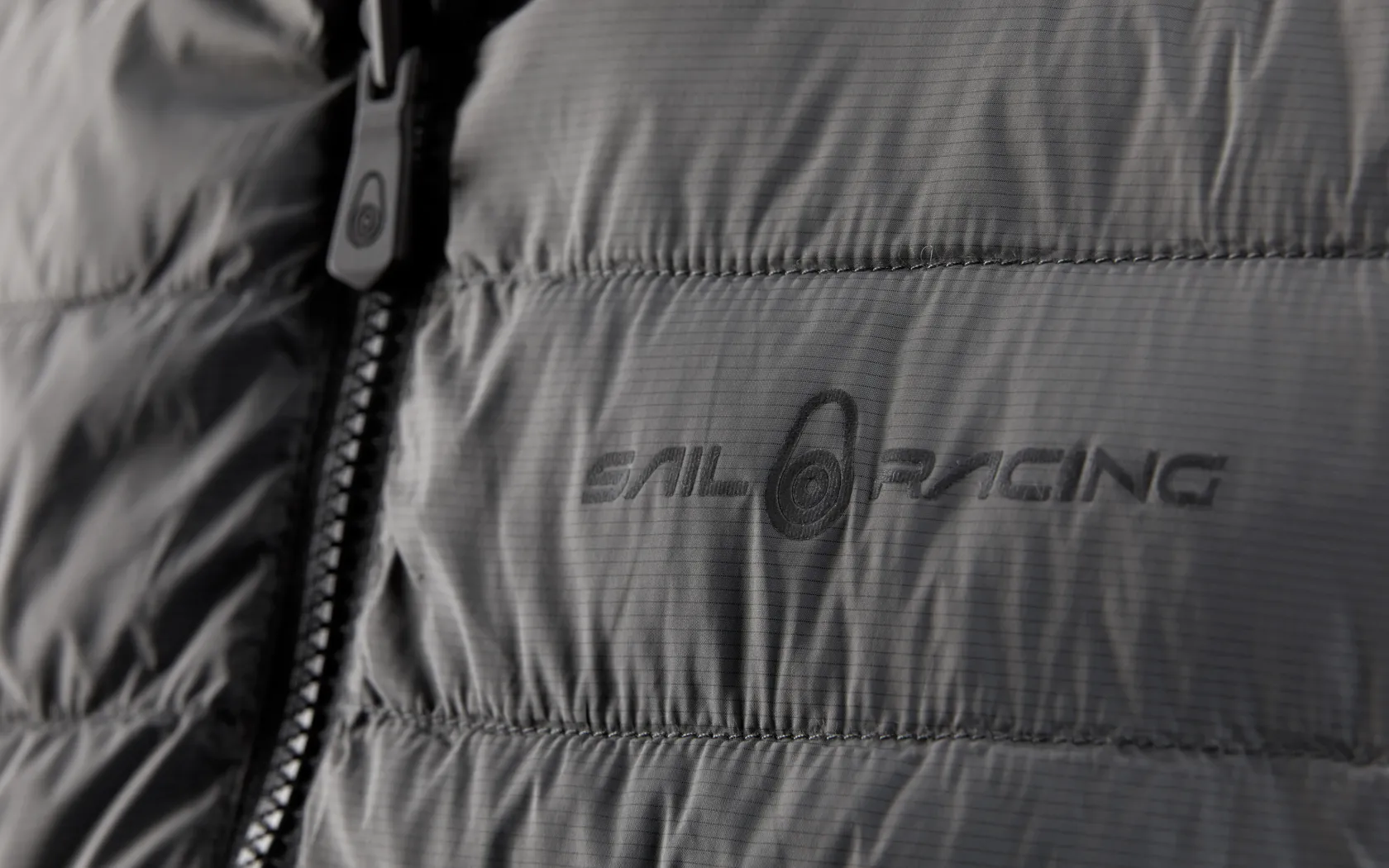 Jackan har elastiska avslut i ärmslut, nederkant och runt luvan för en anpassad passform. För säker förvaring är jackan även utrustad med två rymliga midjefickor med dragkedjor fodrade med microfleece, samt två inre öppna midjefickor med elastiska kanter. Designad med en Sail Racing-logotyp på vänster ärm, en Alinghi Redbull Racing logotyp på höger ärm, ett rubber block-print på toppen av huvan och en tryckt Sail Racing-logo på insidan positionerat på bröstet.