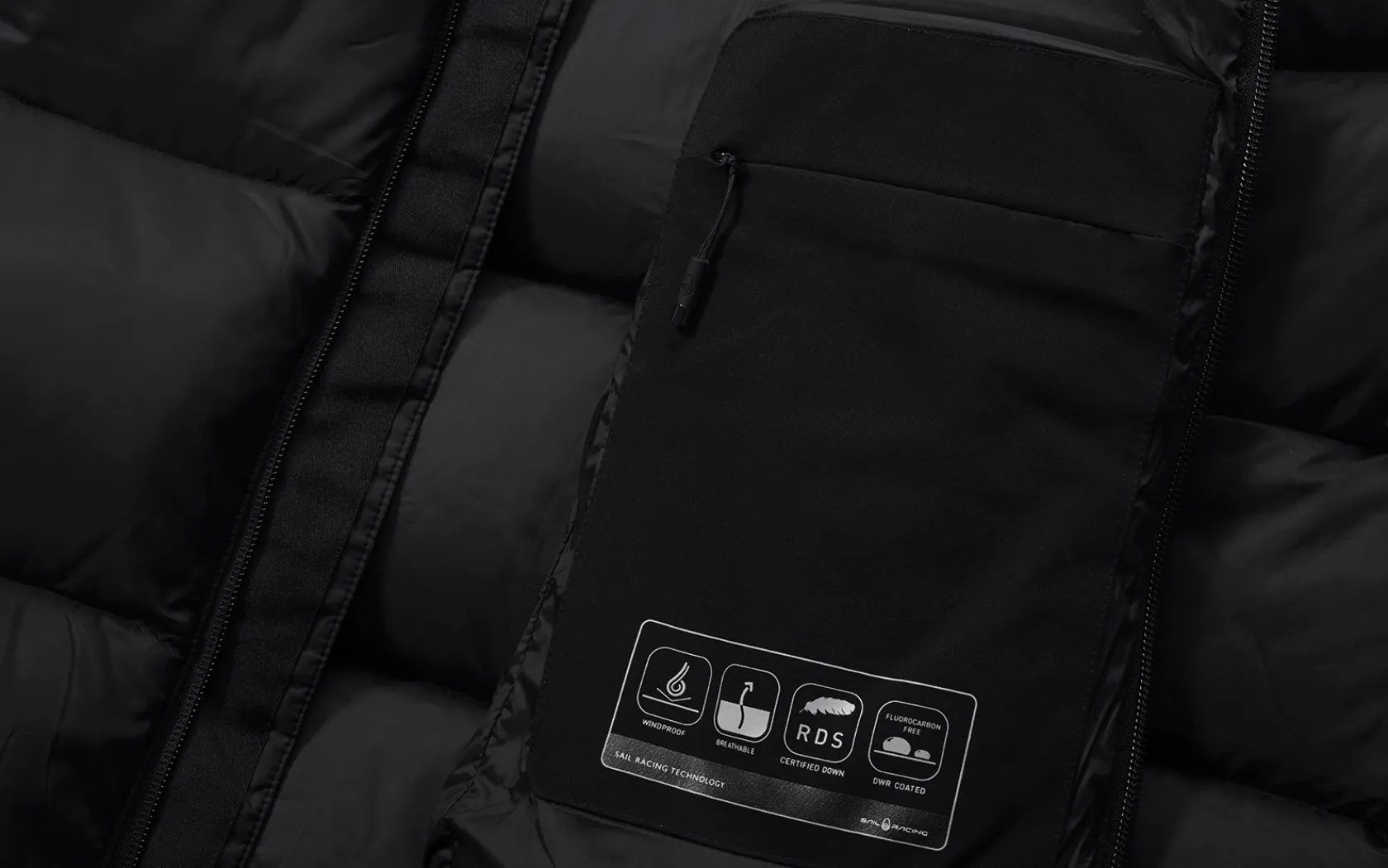 W Cloud Down Hood konstruerad i ett nylon ripstop-tyg med PFC-fri DWR-behandling för vatten- och vindavvisning. Isolerad med 90/10 Blue Sign och RDS-certifierade dun och fjädrar. Fill power: 700. Justerbar i nederkant och huva. Elastisk mudd och ärmslut i stretch-lycratyg. Omvänd dragkedja och midjefickor fodrade med fleece. Innerficka och Sail Racing logga på bröstet och överst på huvan.r